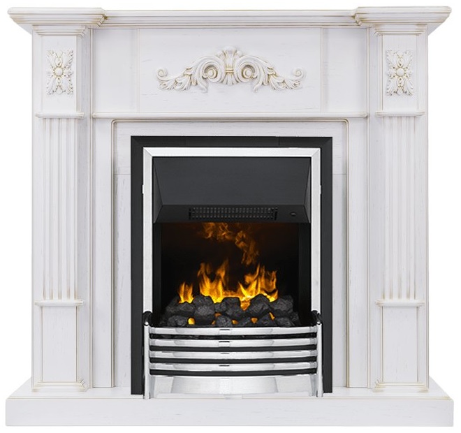 Электрокамин Dimplex Martin с очагом Flagstaff представлен в цвете белый дуб с золотой патиной. Лаконичность и изящность портала позволяют интегрировать камин в различные интерьеры.