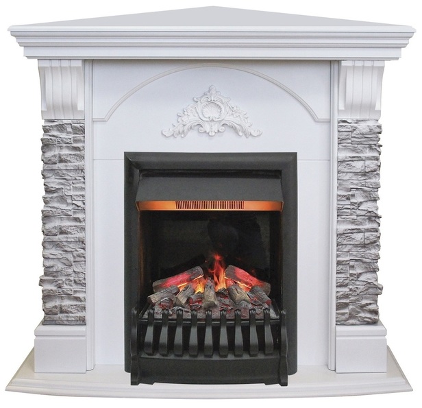 Угловой каминокомплект Real Flame Athena GR с очагом 3D Oregan - сочетание для истинных ценителей эффектных решений. Здесь речь идет о сочетании стилей - кантри и классики. На деревянные элементы (шпонированный МДФ) нанесён резной классический узор в верхней центральной части камина, по бокам расположены две параллельные колонны, выполненные из искусственного камня серого оттенка неровной хаотичной кладки. В целом композиция смотрится гармоничной и нарядной. Нарядность образу придают легкие освежающие цвета и оттенки: серый ("камень"), белый или белый дуб ("дерево"). Угловой камин серии Athena GR также представлен прямой конфигурацией (подробно см: Электрокамин (очаг+портал) Real Flame Athena GR с очагом 3D Oregan). Стоит отметить преимущества самого очага 3D Oregan. Это очаг с потрясающим 3D эффектом пламени и реалистичным муляжом прогоревших дров, с функцией увлажнения воздуха. Он поможет создать комфортную, тёплую, уютную атмосферу в Вашем доме. Надёжная конструкция очага позволит наслаждаться данной моделью на протяжении многих лет.