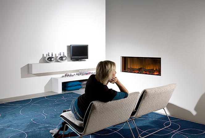 Эта модель может быть встроена в стенную нишу, с его помощью также можно разбить помещение на отдельные зоны, установив камин в любом месте помещения и обозначив границы камином. В комплекте с электрокамином предлагается пульт ДУ.